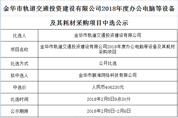 金華市金義東軌道交通有限公司運營2026-2027年度活動實施服務機構(gòu)框架協(xié)議項目中標候選人公示