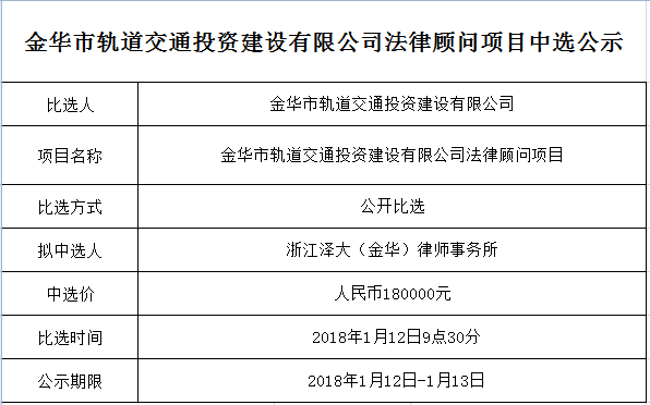 公司法律顧問項(xiàng)目中選公示