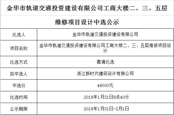 金華市金義東軌道交通有限公司運(yùn)營2026-2027年度活動(dòng)實(shí)施服務(wù)機(jī)構(gòu)框架協(xié)議項(xiàng)目中標(biāo)候選人公示