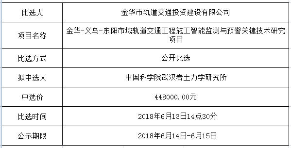 金華市金義東軌道交通有限公司運營2026-2027年度活動實施服務(wù)機構(gòu)框架協(xié)議項目中標(biāo)候選人公示