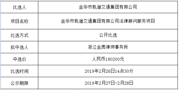 (金華市軌道交通集團(tuán)有限公司法律顧問服務(wù)項目)中選公示